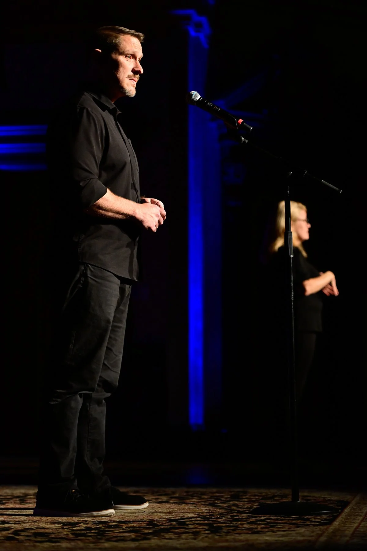 Every year, as part of the Cincinnati Fringe Festival, True Theatre asks artists from other shows in the Festival to share a story having to do with their journeys as an artist. With Preston Bell Charles III (Instagram, Facebook) on violin and Dawn Caudill providing ASL interpretation (thanks to the generosity of Cincinnati State!), this year featured stories from the playwright of the Fringe Development piece “Webcam” - Kirk Sheppard (Instagram, theatre blog), the title character of “Bloody Mary” and Fringe Guide Cover Model - Aiden Sims (Instagram), creator and star of “Eleanor’s Story: An American Girl in Hitler’s Germany” - Ingrid Garner (Instagram, Facebook show page), and co-creator and co-star of “SeaMAN” - Bruce Ryan Costella (Instagram, production team on IG)! We love this annual partnership with Cincy Fringe and we’ll be back in 2025 to do it again! (...assuming they invite us, but that feels like a pretty good bet). [Photos by Leila Kubesch - Kubesch Photography on FB]